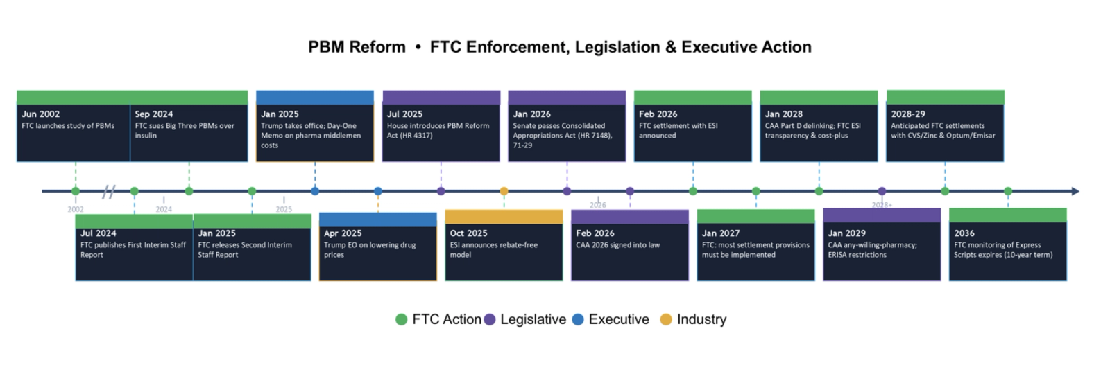 Even with the noise surrounding PBM reform, there’s no question this round of changes is meaningful. The FTC settlement, CAA pass‑through requirements, and new BFSF rules will force updates to long‑standing contracting practices and create real shifts in how value moves through the system.